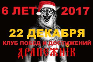 Друзья, сегодня 22 декабря 2017 года исполняется 6 лет нашему клубу побед и достижений «Драпежник». За это время наш проект сильно развился и стал ещё более успешным. Особенно эффективным и победным был этот 2017 год. Напомню о том, что основной идеей и задачей нашего проекта КПД «Драпежник» является освоение методов … Читать далее КЛУБ ПОБЕД И ДОСТИЖЕНИЙ «ДРАПЕЖНИК» 6 ЛЕТ — 22 декабря 2017 года